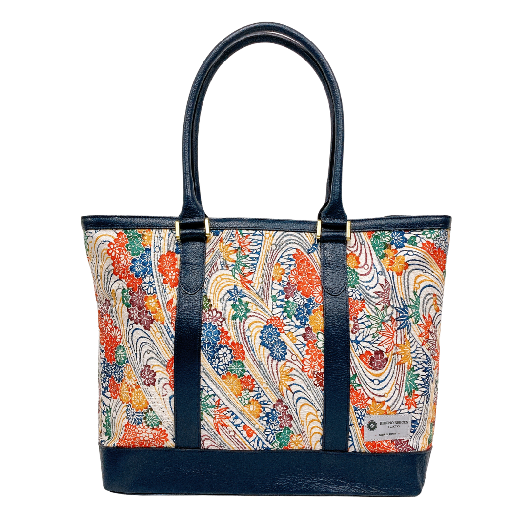 Kimono Leather Tote bag 057 Navy